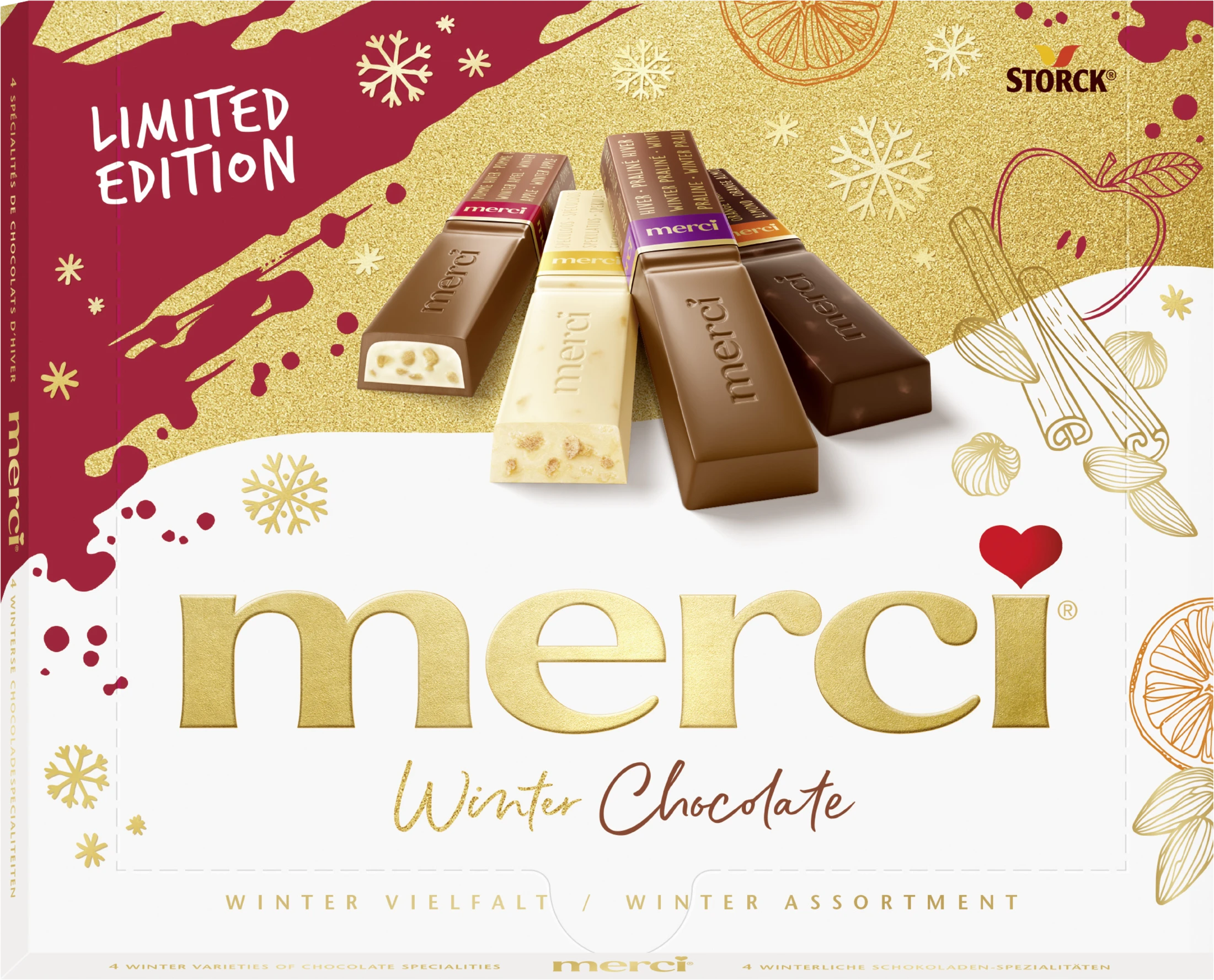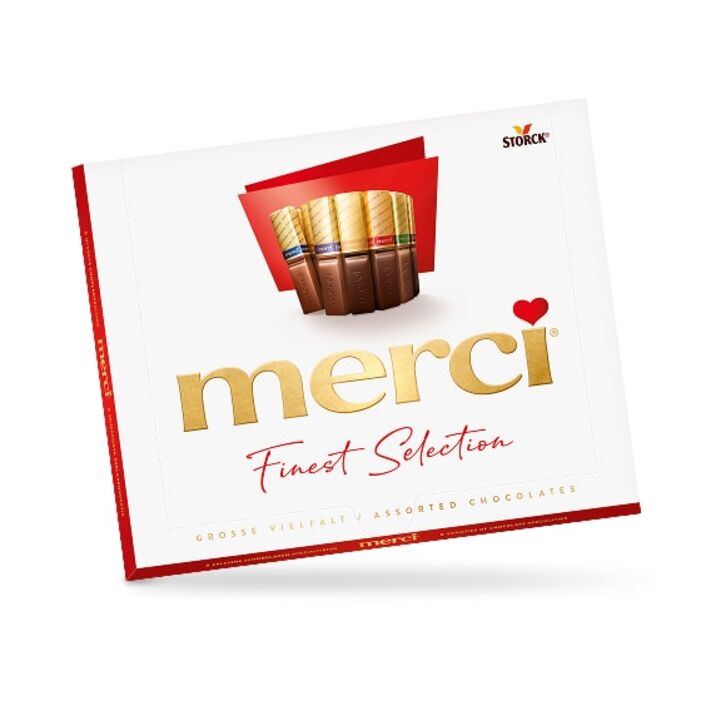 Najboljše čokoladne palčke, izdelane iz izbranih sestavin in posamično zavite v zlat papir: tako je merci že leta 1964 osvojil srca ljudi. Ne preseneča, da je merci darilo, ki ga podarjamo kot posebno zahvalo. Merci pomeni hvala – hvala, ker si.